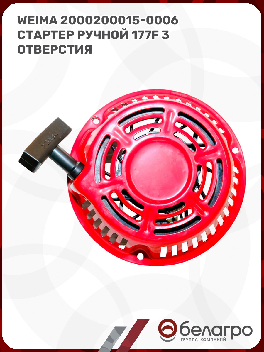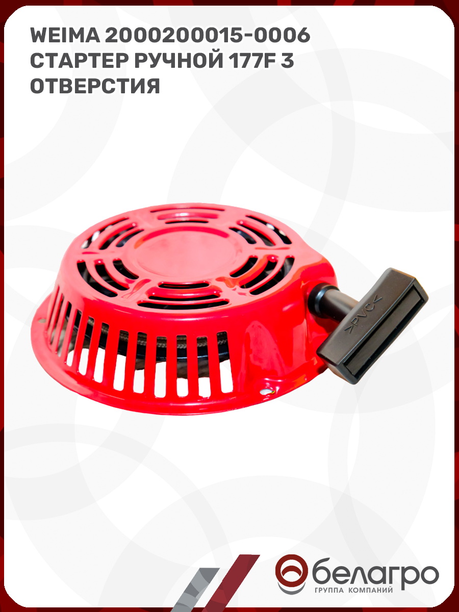 Стартер ручной устанавливается на двигатели мощностью 6.6 кВт / 9 л.с