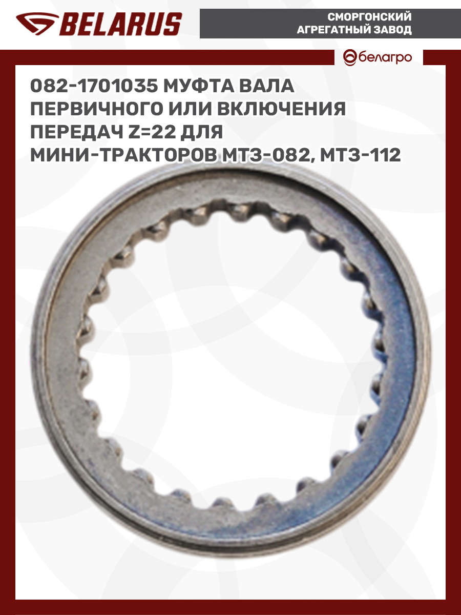 082-1701035 Муфта вала первичного или включения передач Z=22 для мини-тракторов МТЗ-082, МТЗ-112Н, МТЗ-132Н