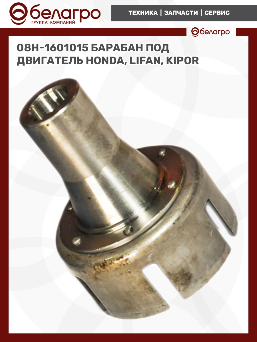 Барабан устанавливается на вал двигателя мотоблока диаметром 25 мм.