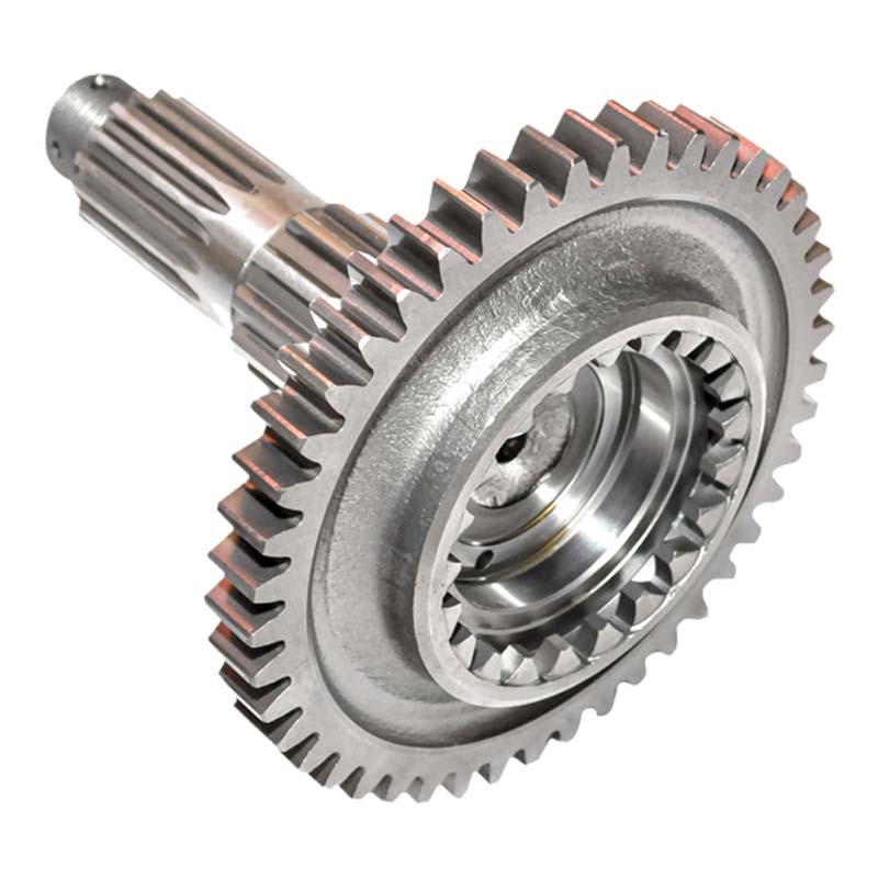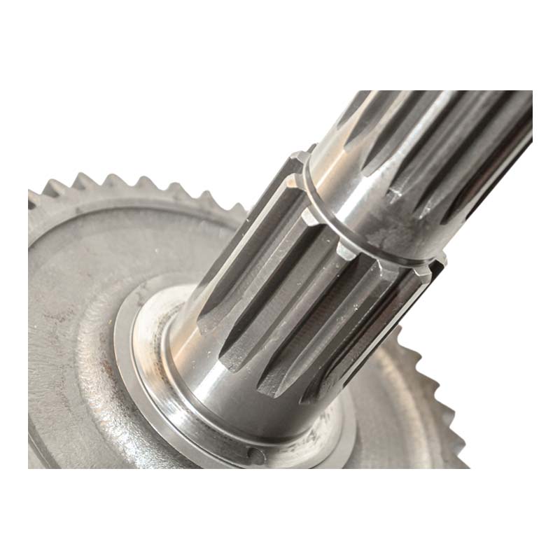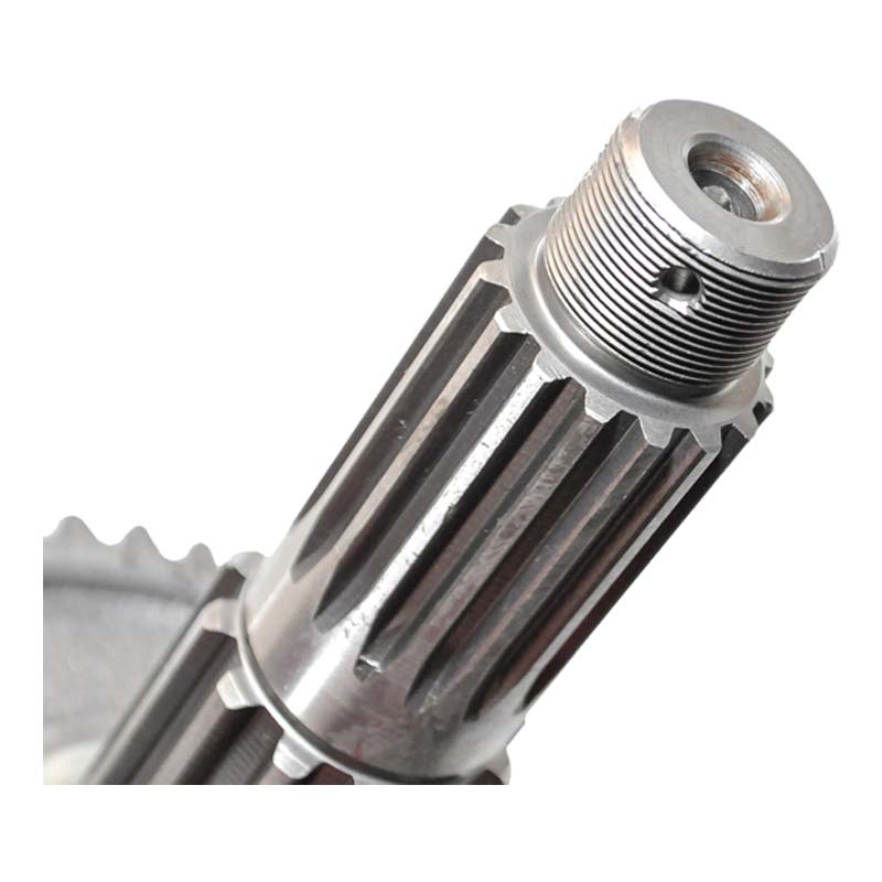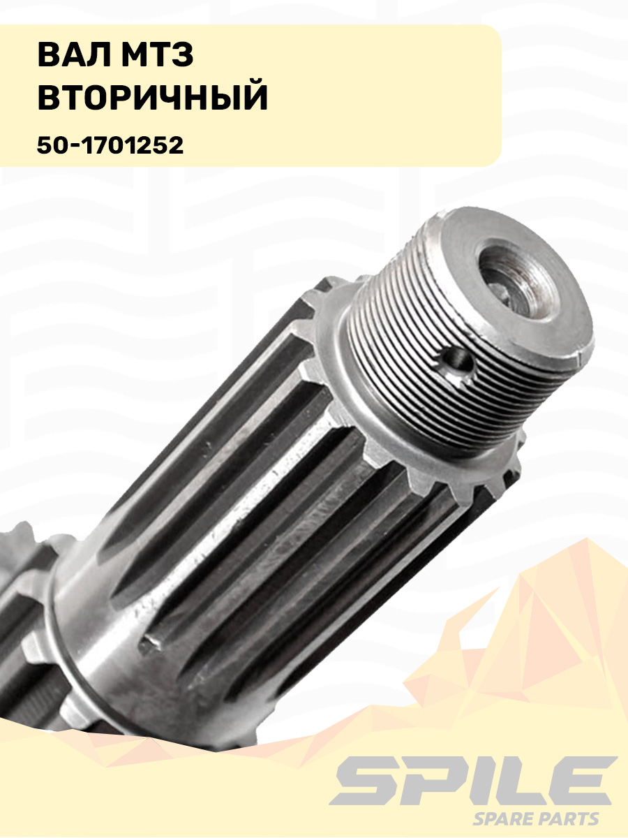 Вторичный вал коробки передач принимает вращение от промежуточного вала и через установленные на нём шестерни передаёт крутящий момент к дифференциалу и ведущим колёсам трактора. Это основной выходной вал КПП.
