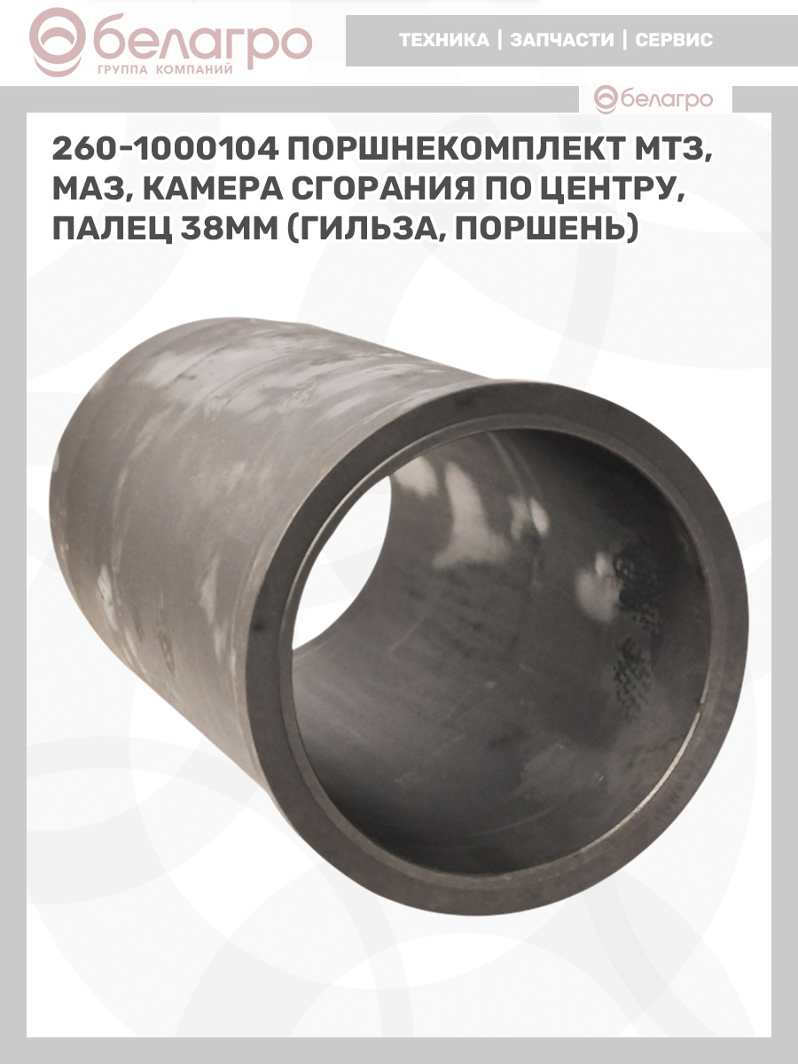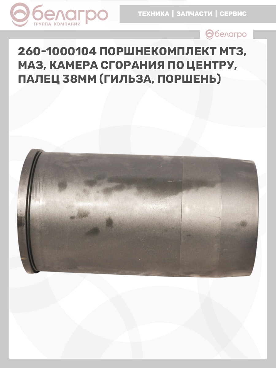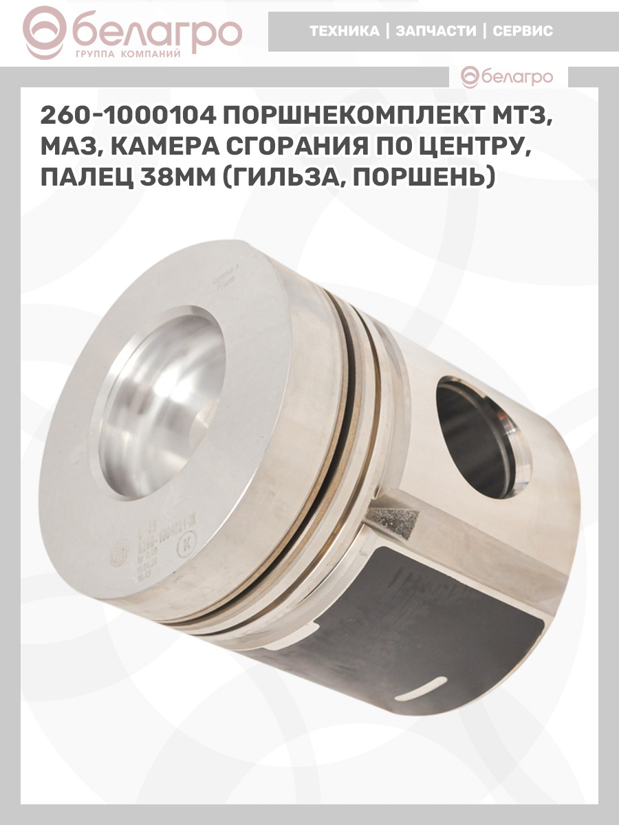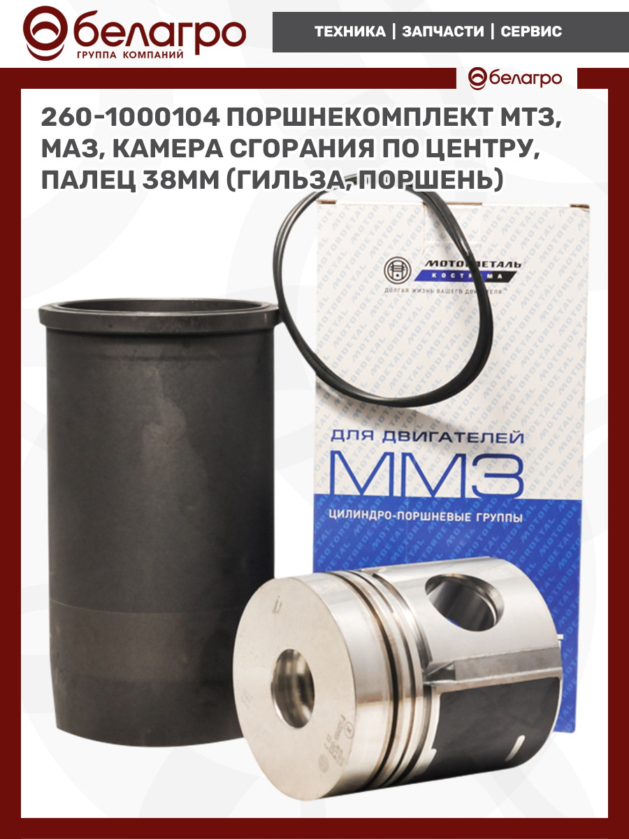260-1000104 Поршнекомплект МТЗ, МАЗ, камера сгорания по центру, палец 38мм (гильза, поршень), РФ