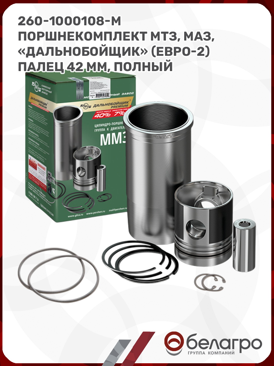 260-1000108-М Поршнекомплект Мтз, Маз, "Дальнобойщик" (Евро-2) палец 42 мм, полный комплект