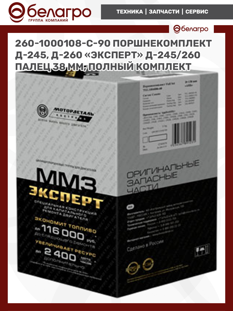 260-1000108-С-90 Поршнекомплект Д-245, Д-260 "Эксперт" Д-245/260 палец 38 мм, полный комплект, РФ