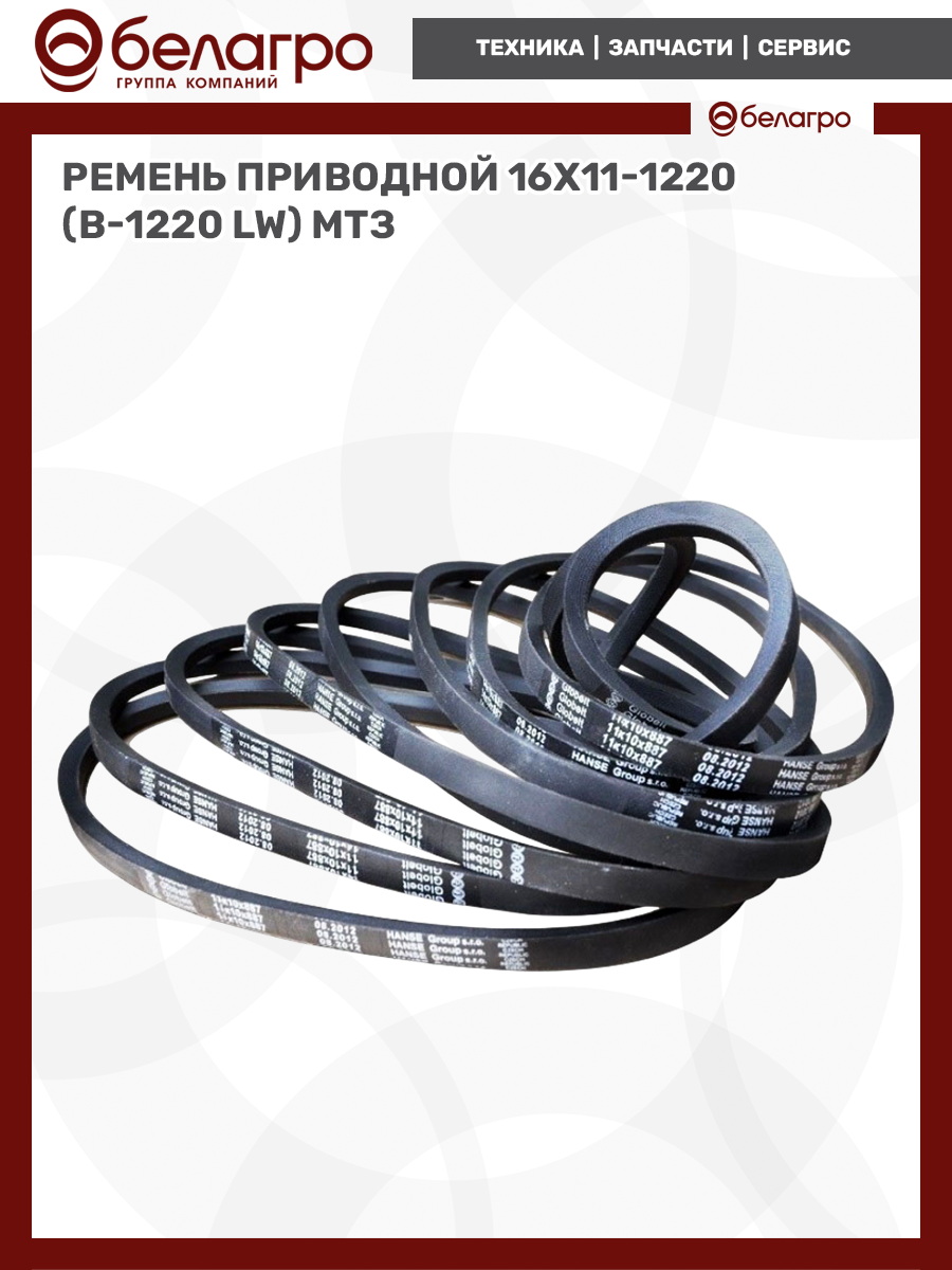 Длина ремня L=1220 мм., размер профиля: (16х11). Устанавливается на привод водяного насоса тракторов МТЗ-1221,1523