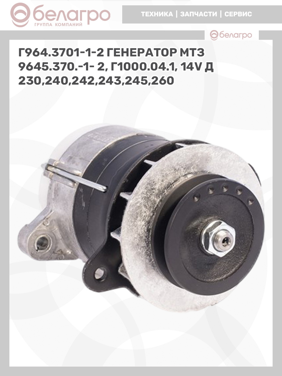 Г964.3701-1-2 Генератор МТЗ 9645.370.-1- 2, Г1000.04.1, 14v д 230,240,242,243,245,260, Беларусь