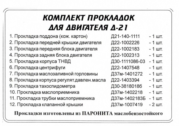 Комплект прокладок Д-21