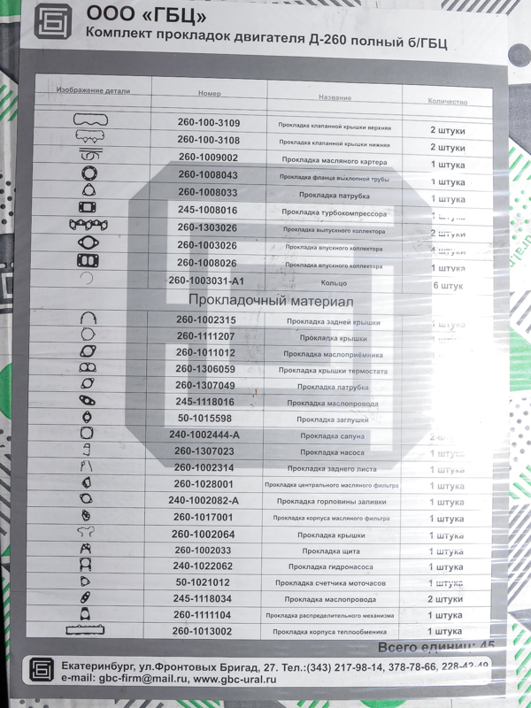 Артикул Р/к Д-260 б ГБЦ ПМ