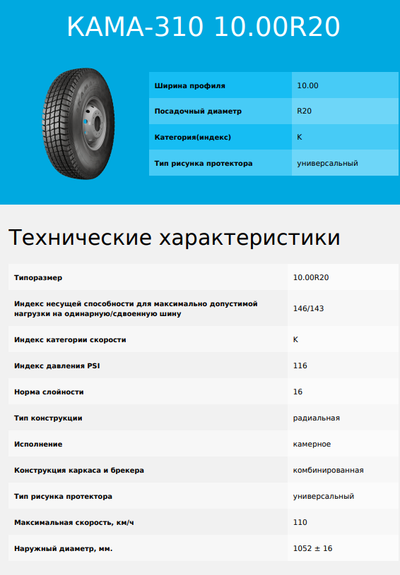 Артикул Автошина 10.00R20