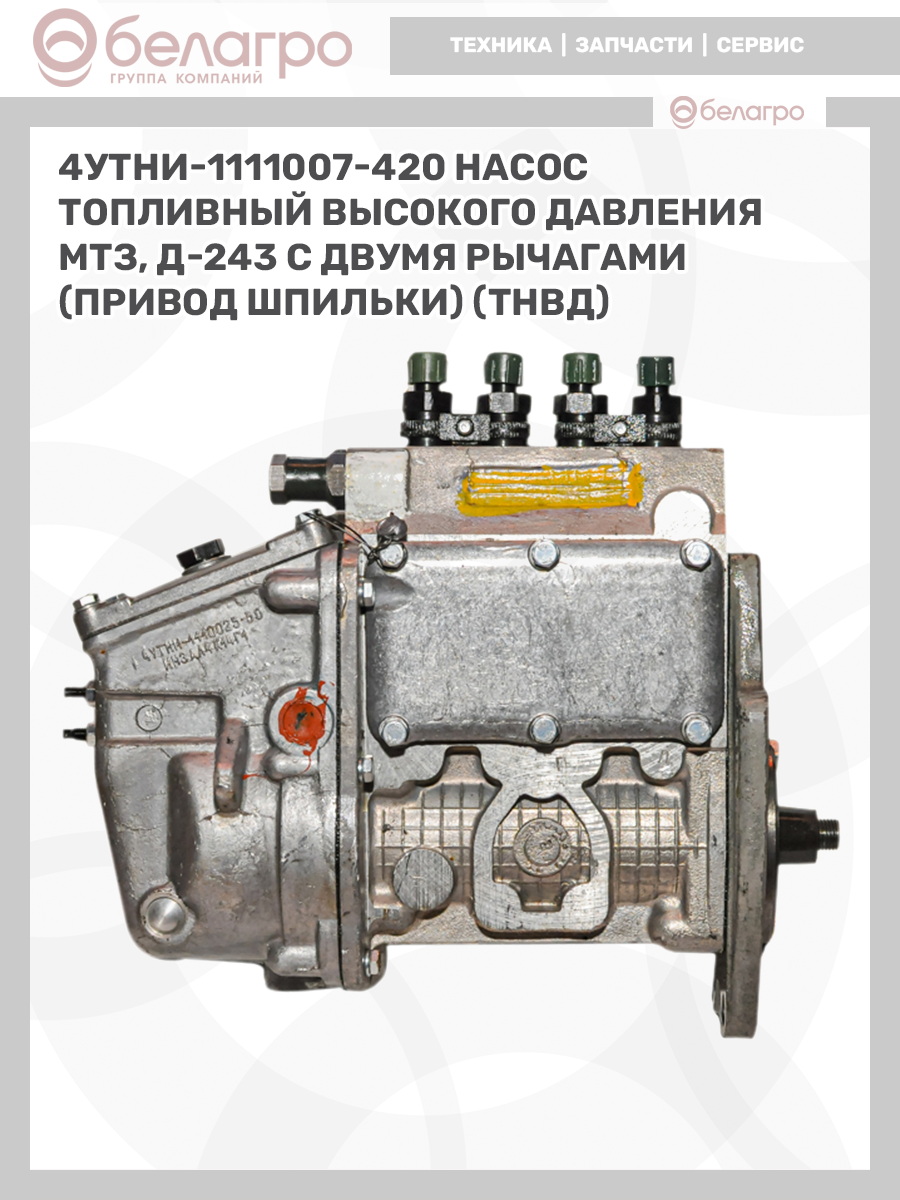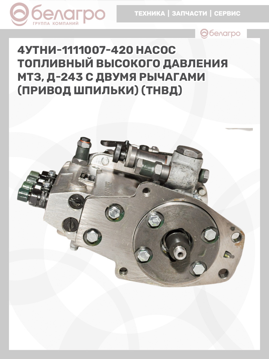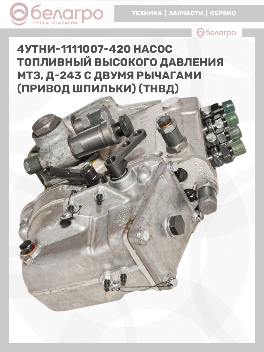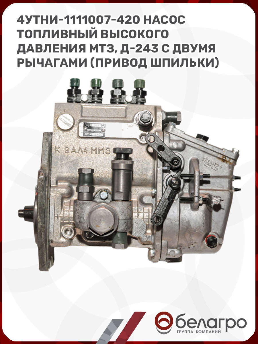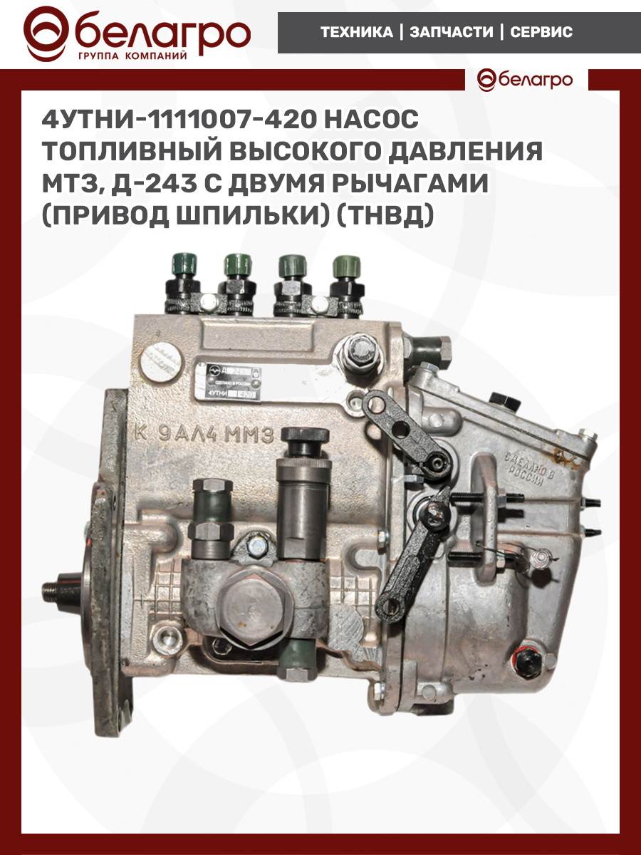 4УТНИ-1111007-420 Насос топливный высокого давления МТЗ, Д-243 с двумя рычагами (привод шпильки) (ТНВД), РФ