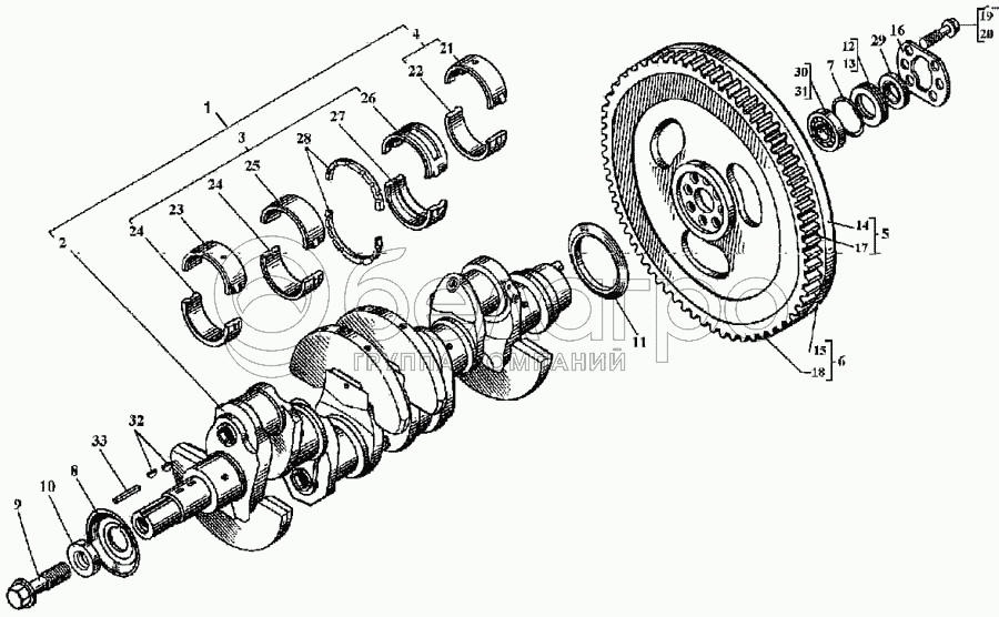 Каталог запасных частей к технике: ВТЗ Д-144. Вал коленчатый и маховик
