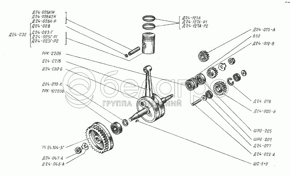 Каталог запасных частей к технике: ЮМЗ Д-65. Механизм кривопшипно-шатунный пускового двигателя