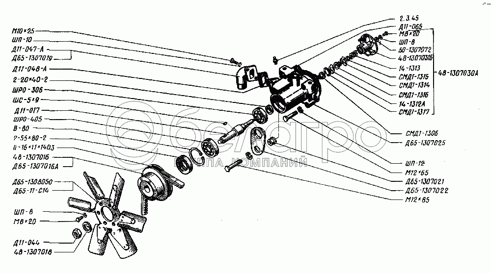 Каталог запасных частей к технике: ЮМЗ Д-65. Насос водяной и вентилятор
