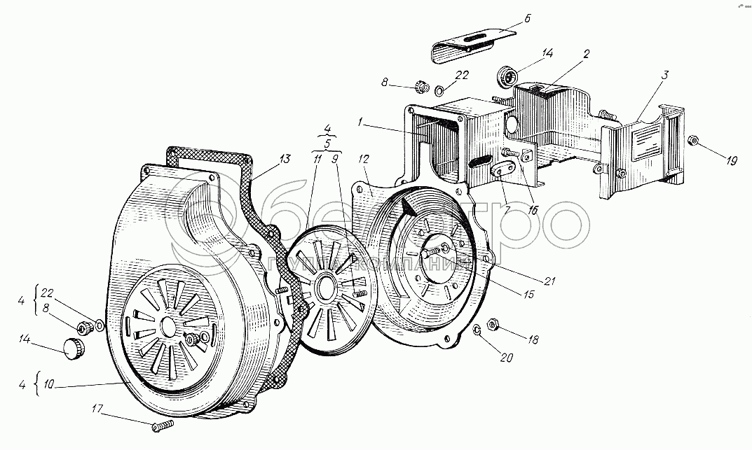Каталог запасных частей к технике: ХТЗ Т-012. Кожухи маховика и цилиндра
