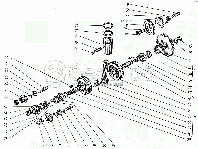 Каталог запасных частей к технике: ХТЗ Т-150. Кривошипно-шатунный механизм