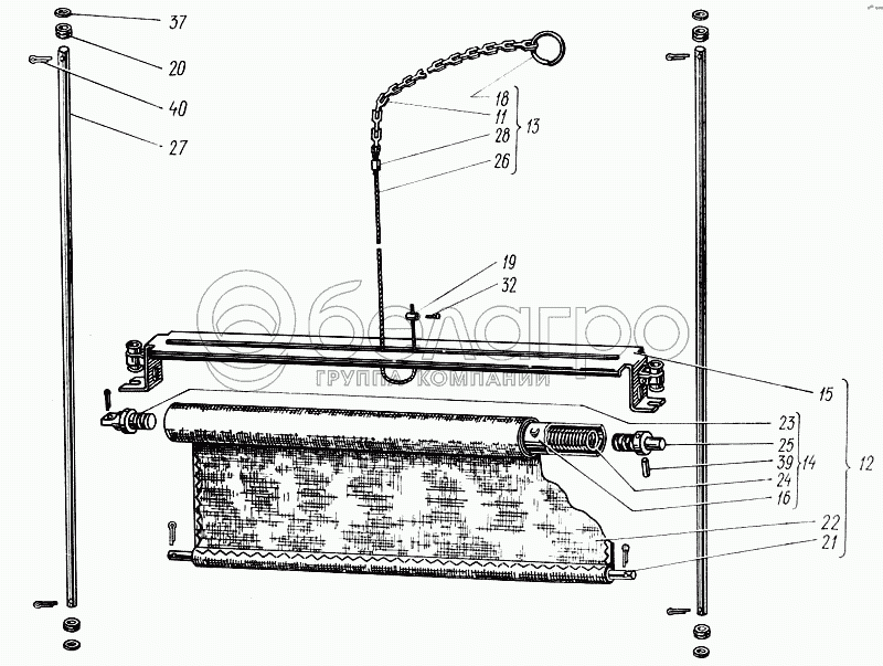 Цепочка управления шторкой радиатора в сборе