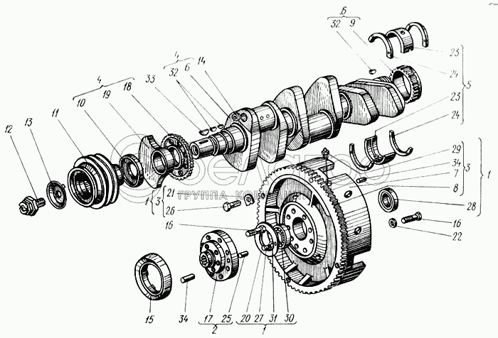 Каталог запасных частей к технике: ХТЗ Т-150. Вал коленчатый