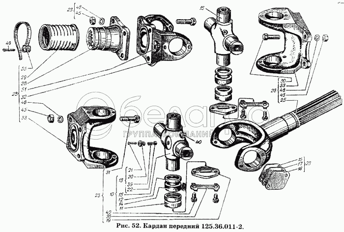 Каталог запасных частей к технике: ХТЗ Т-150К. Кардан передний 125.36.011-2