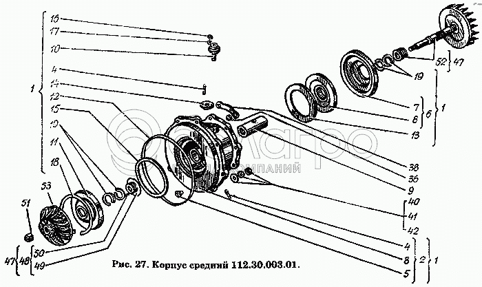 Каталог запасных частей к технике: ХТЗ Т-150К. Корпус средний 112.30.003.01