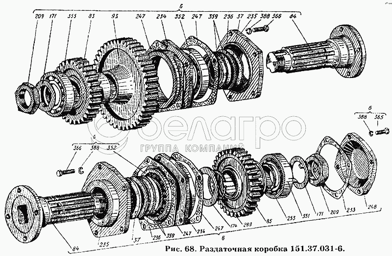 Каталог запасных частей к технике: ХТЗ Т-150К. Раздаточная коробка 151.37.031-6