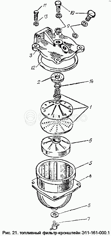 Каталог запасных частей к технике: ХТЗ Т-150К. Топливный фильтр-кронштейн Э11-161-000.1