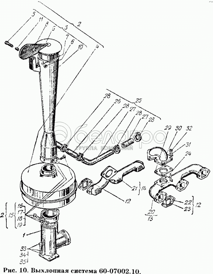 Каталог запасных частей к технике: ХТЗ Т-150К. Выхлопная система 60-07002.10