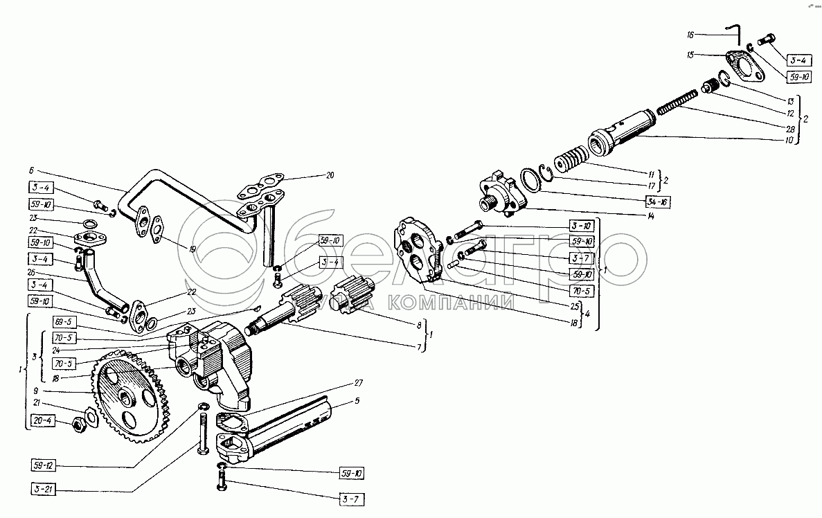 Каталог запасных частей к технике: ХТЗ Т-151К-08. Насос масляный
