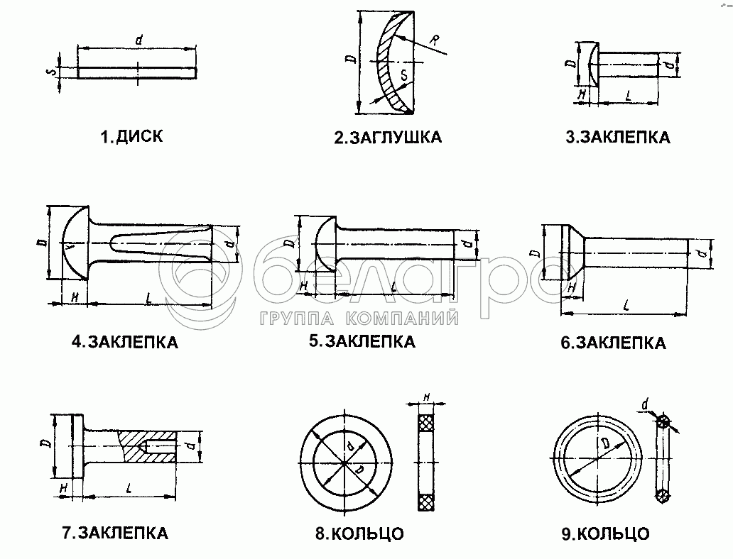 Заклепка (d=4, L=22, H=1,6, D=7)