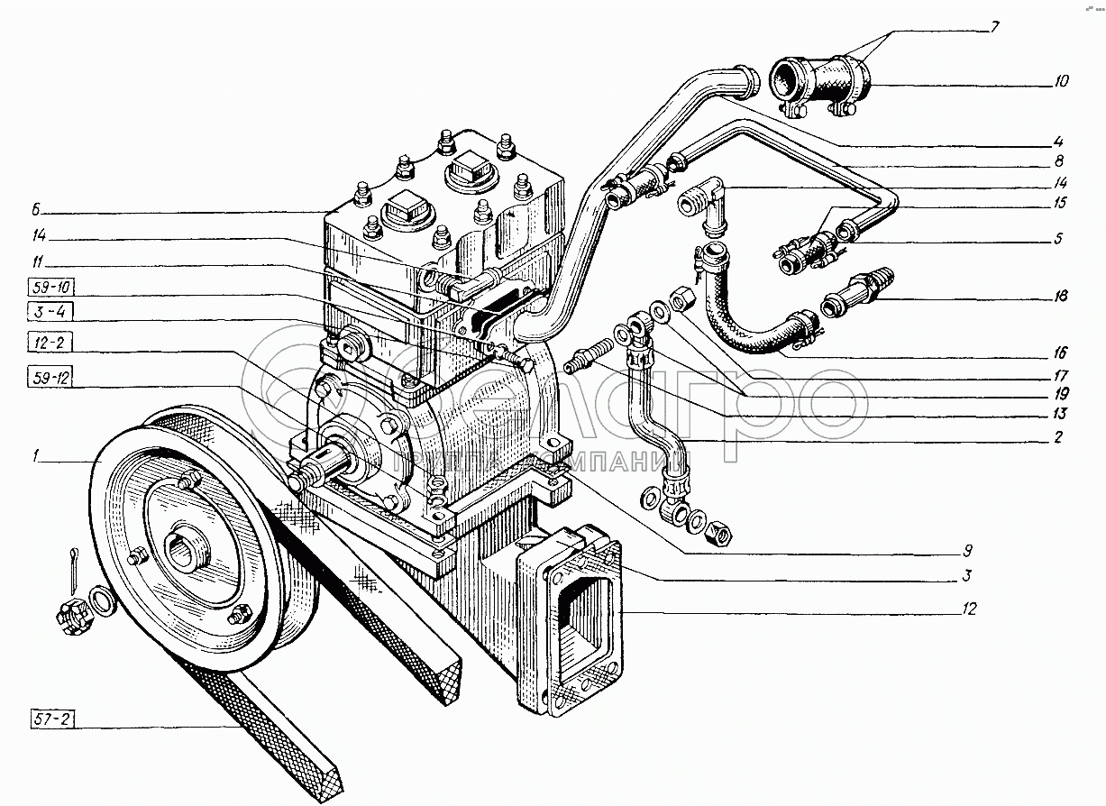 Каталог запасных частей к технике: ХТЗ Т-151К-08. Установка компрессора