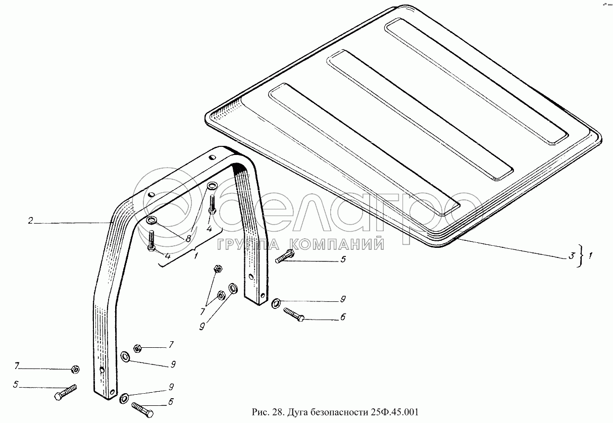 Каталог запасных частей к технике: ХТЗ Т-25Ф. Дуга безопасности 25Ф.45.001