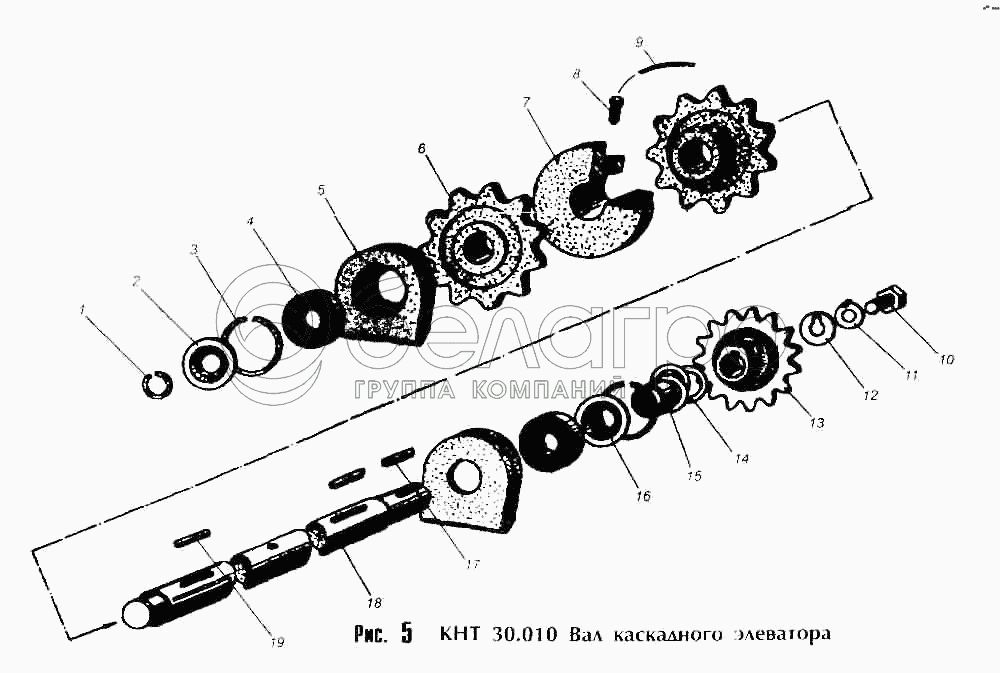 Каталог запасных частей к технике: Лидсельмаш КТН-2В. КНТ 30.010 Вал каскадного элеватора