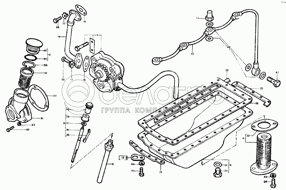 Каталог запасных частей к технике: ЛТЗ-55. Система смазки