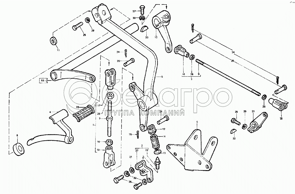 Каталог запасных частей к технике: ЛТЗ-55. Управление муфтой сцепления