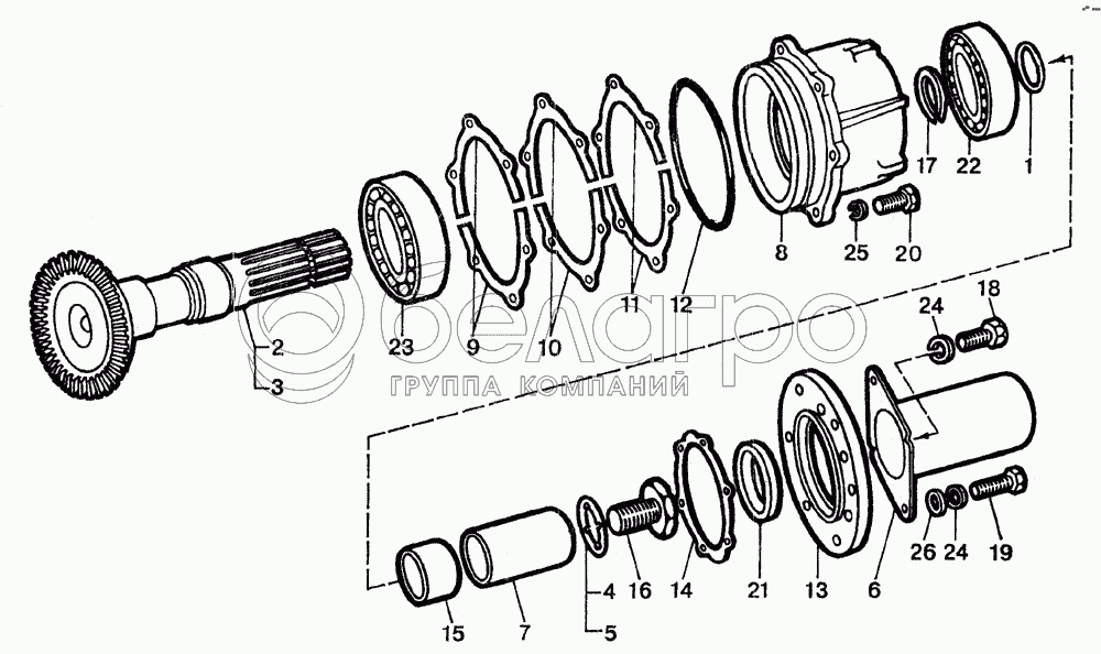 Каталог запасных частей к технике: ЛТЗ-55. Вал отбора мощности боковой