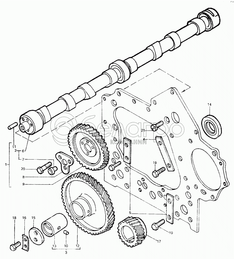 Каталог запасных частей к технике: ЛТЗ-55. Вал распределительный и шестерни
