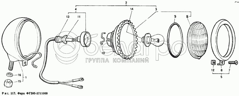 Каталог запасных частей к технике: ЛТЗ Т-40М. Фара ФГ305-3711000