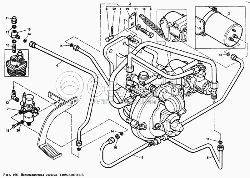 Каталог запасных частей к технике: ЛТЗ Т-40М. Пневматическая система Т40М-3500110-Б