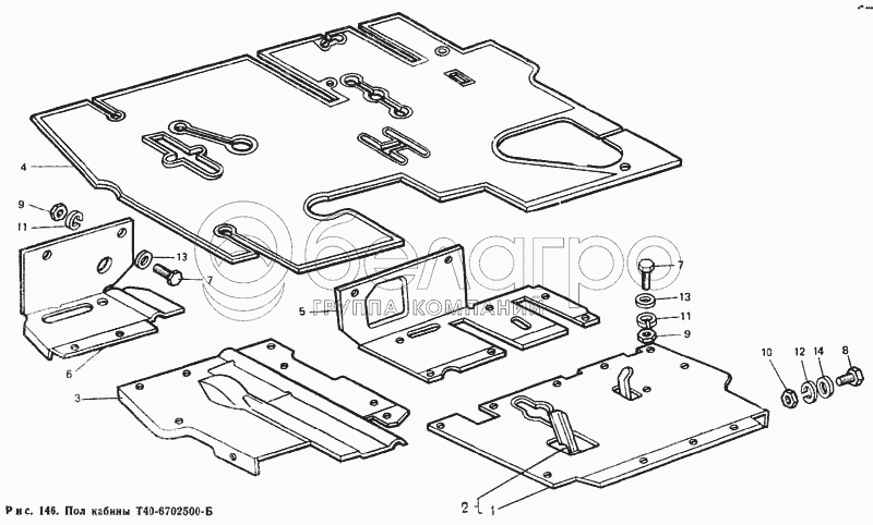 Каталог запасных частей к технике: ЛТЗ Т-40М. Пол кабины Т40-6702500-Б