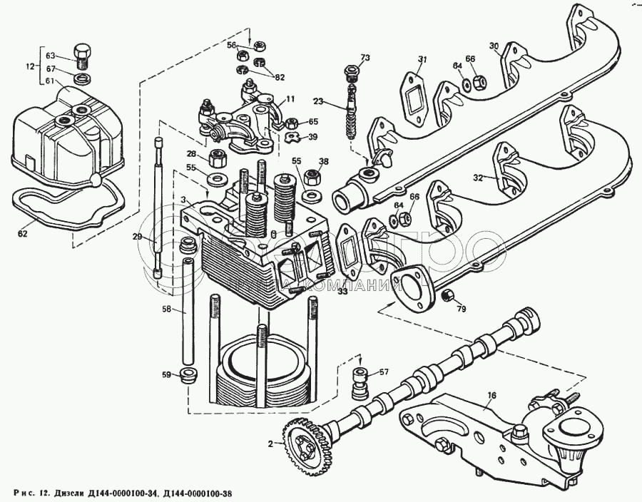 Каталог запасных частей к технике: ЛТЗ Т-40М. Распределительный вал, шестерни газораспределения и головка цилиндра