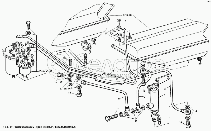 Каталог запасных частей к технике: ЛТЗ Т-40М. Топливопроводы Д42-1104020-Г, Т40АН-1105020-Б