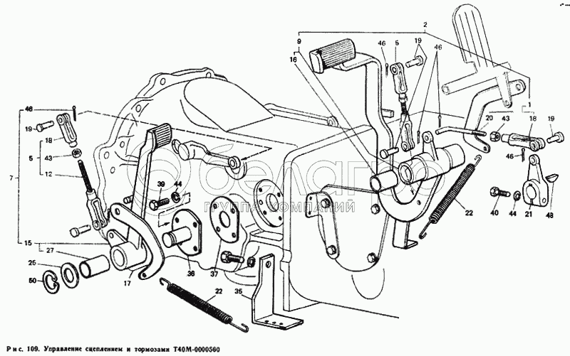 Каталог запасных частей к технике: ЛТЗ Т-40М. Управление сцеплением и тормозами Т40М-0000560