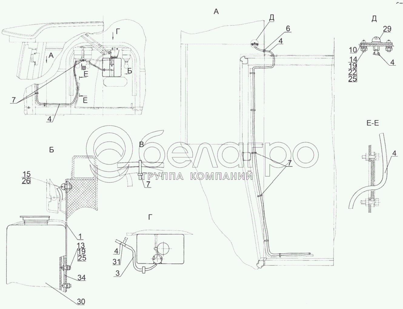 Каталог запасных частей к технике: МТЗ 1523.5. Установка стеклоомывателя