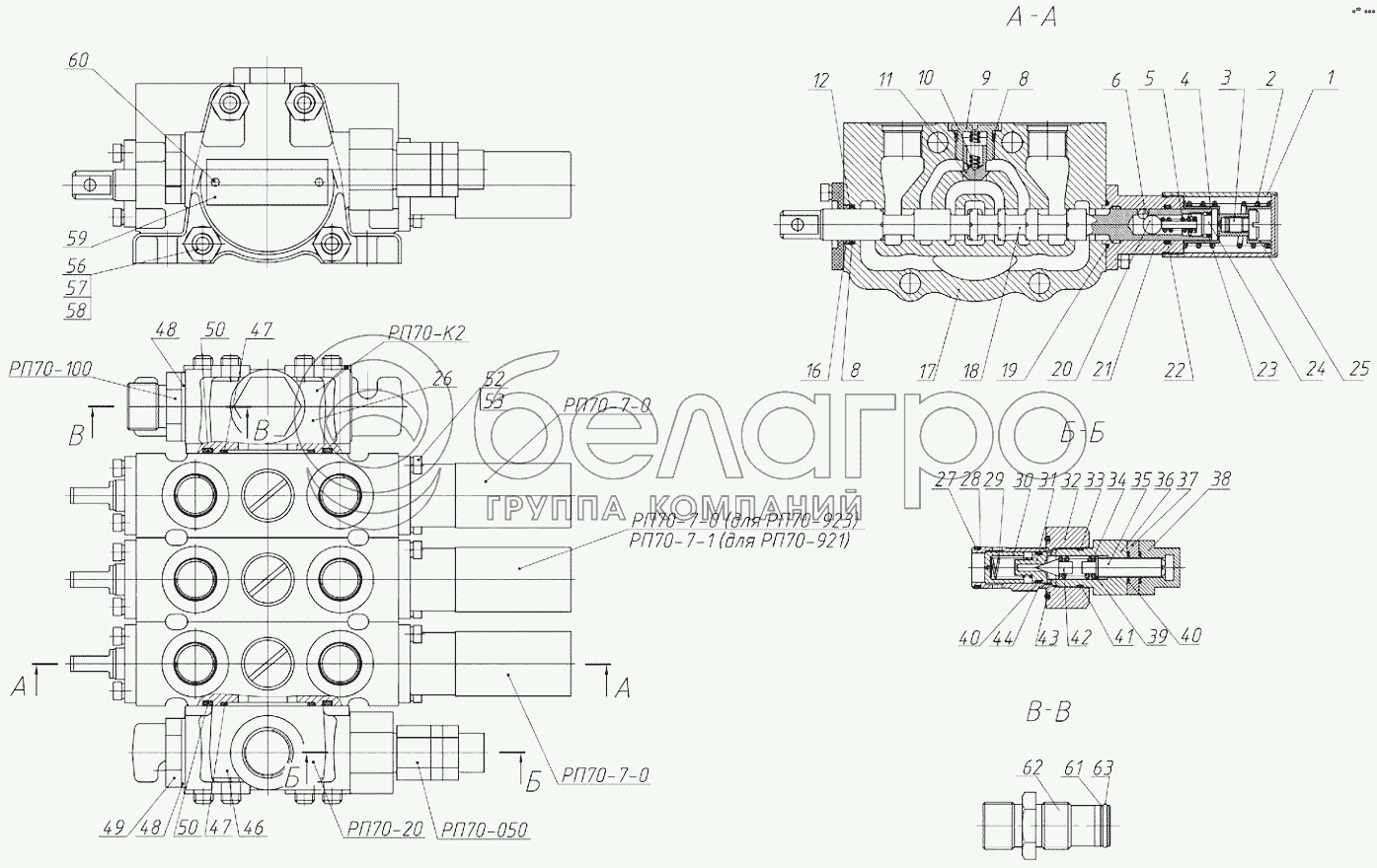 Каталог запасных частей к технике: МТЗ 923.4. Гидрораспределитель РП70
