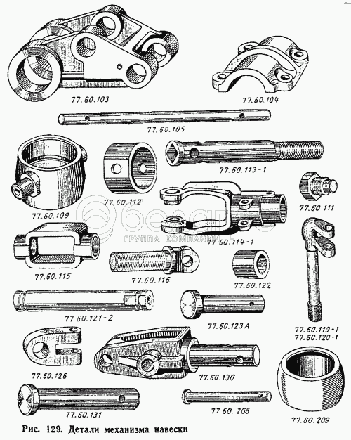 Каталог запасных частей к технике: ВгТЗ ДТ-75М. Детали механизма навески