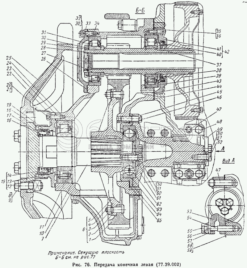 Каталог запасных частей к технике: ВгТЗ ДТ-75М. Передача конечная левая (77.39.002)