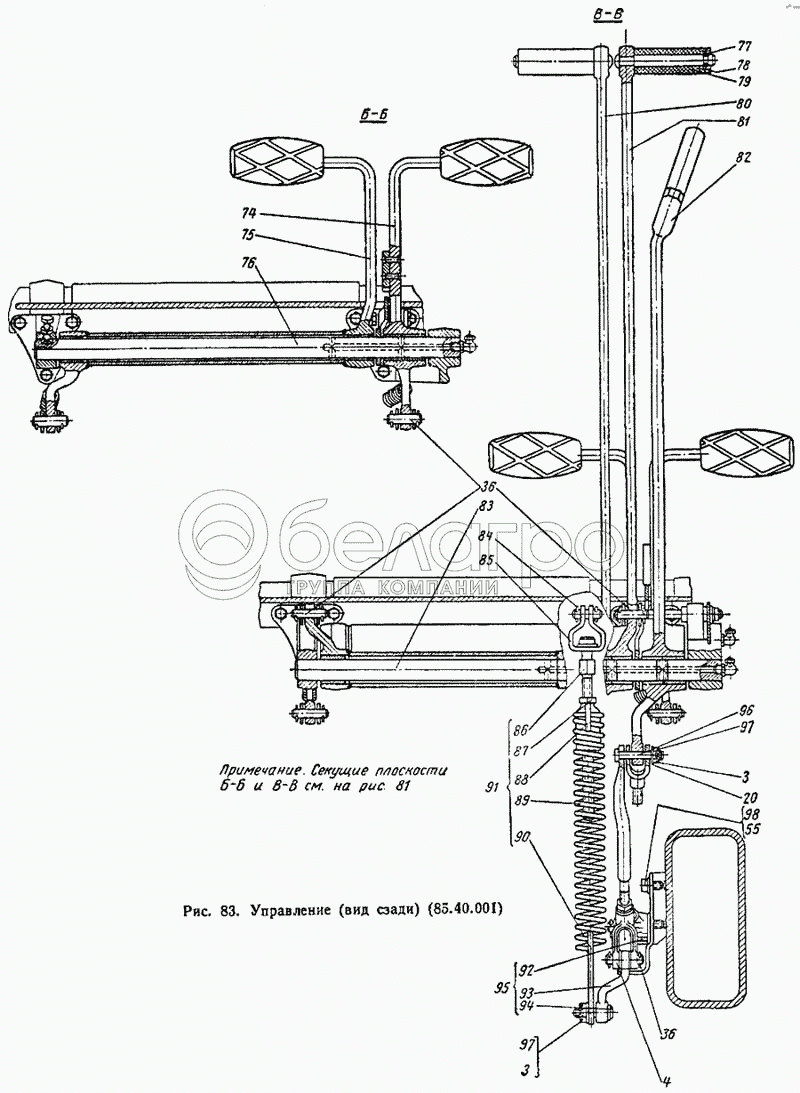 Каталог запасных частей к технике: ВгТЗ ДТ-75М. Управление (вид сзади) (85.40.001)