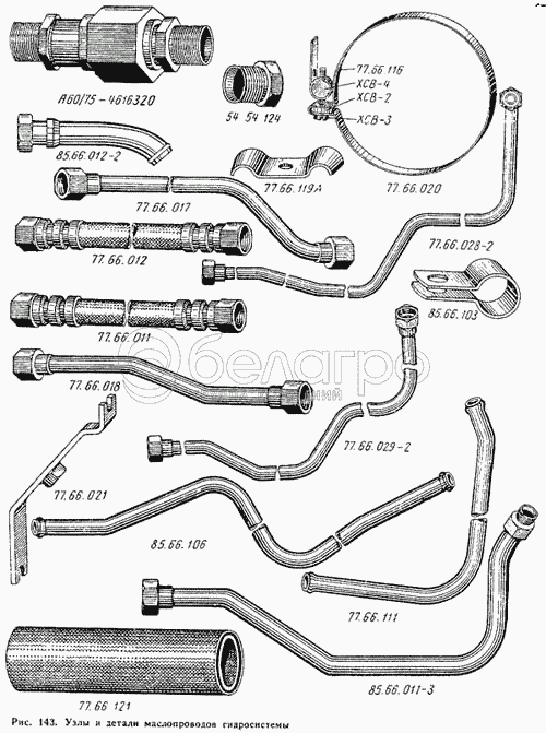 Каталог запасных частей к технике: ВгТЗ ДТ-75М. Узлы и детали маслопроводов гидросистемы