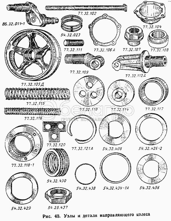 Каталог запасных частей к технике: ВгТЗ ДТ-75М. Узлы и детали направляющего колеса