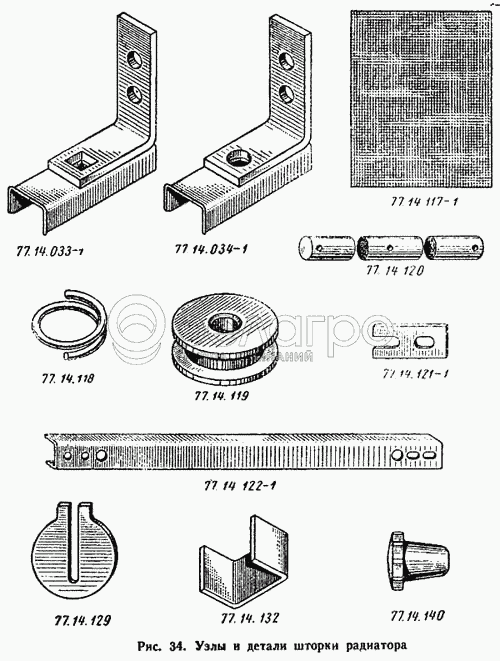 Каталог запасных частей к технике: ВгТЗ ДТ-75М. Узлы и детали шторки радиатора