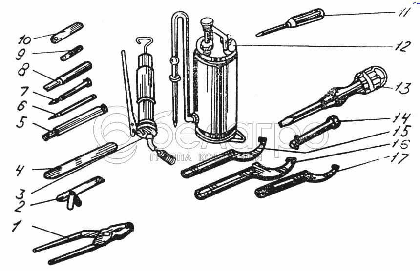 Каталог запасных частей к технике: ВгТЗ ДТ-75МВ. Комплект инструмента и принадлежности