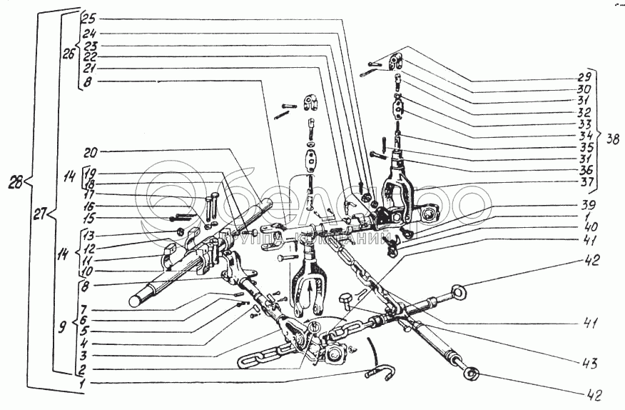 Каталог запасных частей к технике: ВгТЗ ДТ-75МВ. Механизм навески. Тяги и растяжки